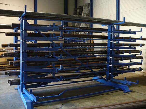 The “Cleverrack” offers you the best possible economic solution for storage of long bars, tubes or other materials with lengths up to 6 meters and loading capacity up to 28,000 kg per system. The simplicity of the system is stunning; a couple of rotating arms make it possible to store, load and unload materials in a very effective and safe way. SIMPLE AND COST EFFECTIVE. We have a large stock of these products so short delivery times can be GUARANTEED.