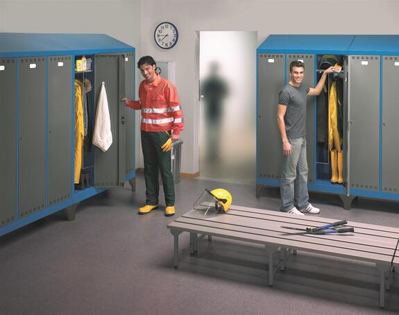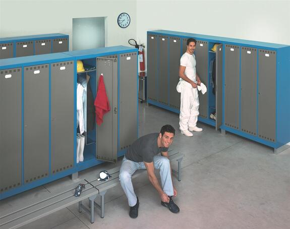 • Locker with 3 compartments • 3 point locking • Locker with fixed upper shelf, 3 height-adjustable lateral shelves and fixed separation panel. • Locker with fixed shelves and fixed separation panel • Locker with height-adjustable shelf for helmet • Locker with 2 vertical compartments placed one on top of the other • SINGLE-SIDED AND DOUBLE-SIDED BENCHES • SINGLE-SIDED AND DOUBLE-SIDED BENCHES WITH SHOE STORAGE FACILITY