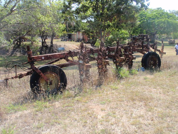 pin wheel stick rake in no further use selling it as is basis need a few repairs to get it up and running . |